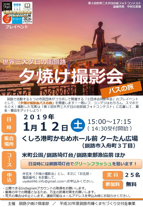 また、プレイベントとして、釧路夕焼け倶楽部主催で「夕焼け撮影会バスの旅」を開催します!