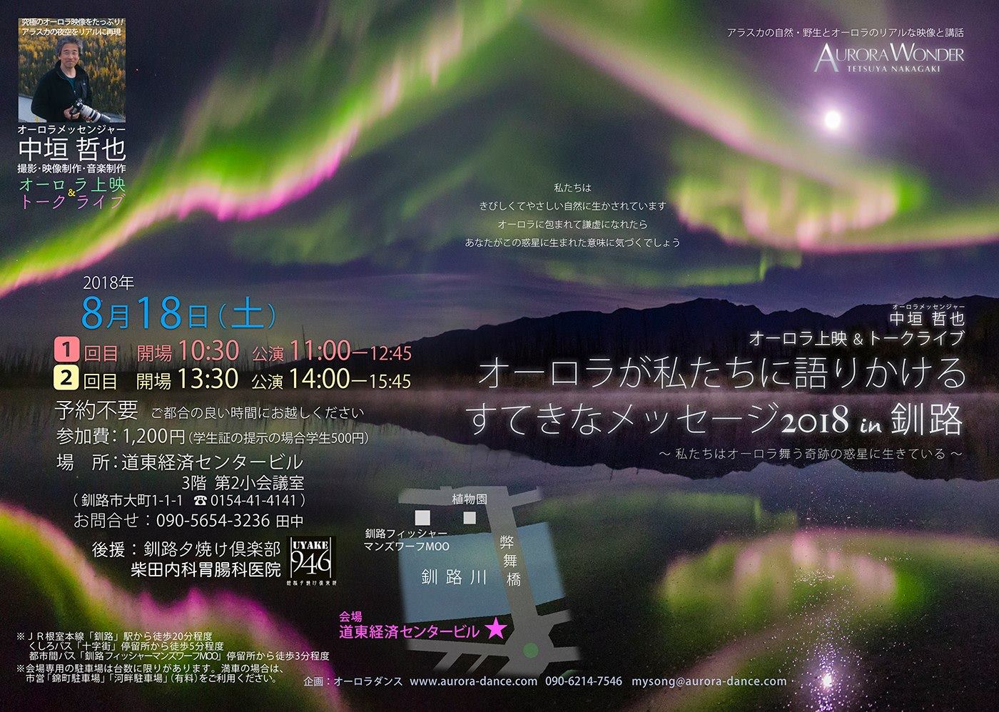 今回は新しいオーロラ映像と共に8月18日(土)に再び来釧します。
